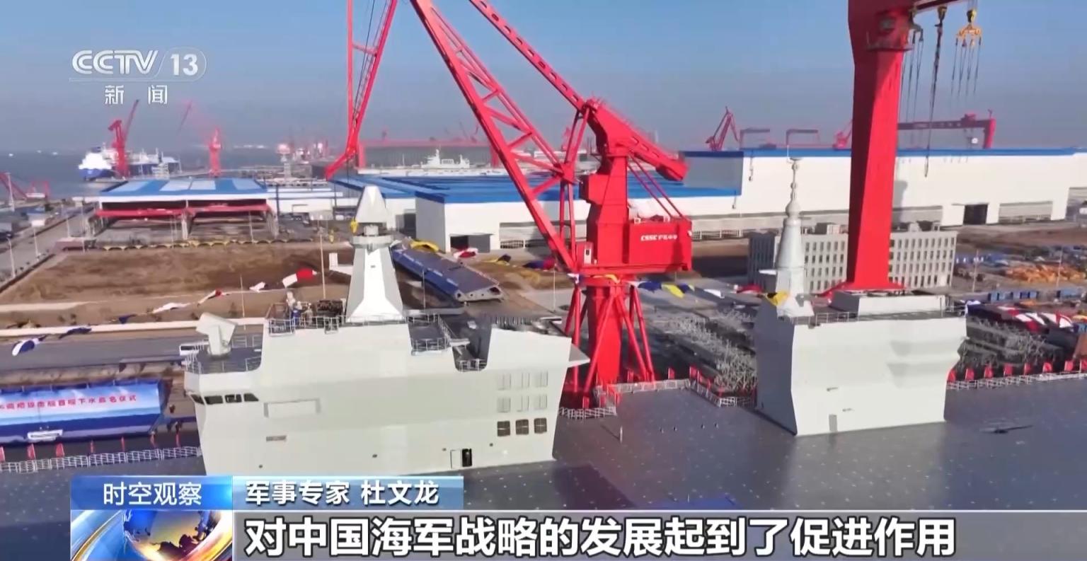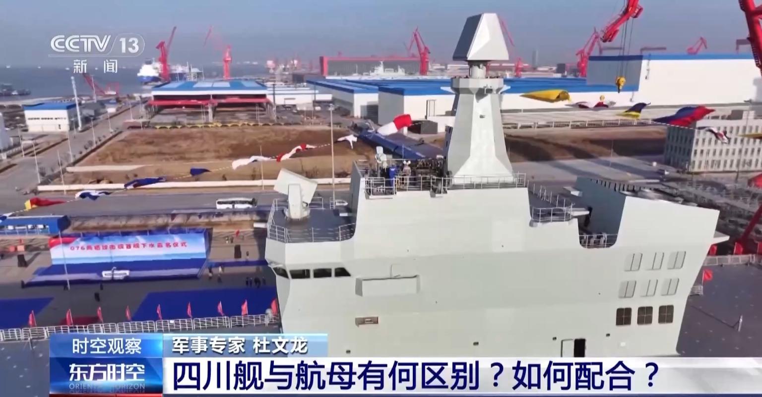 27日上昼,由我国自主研制建造的076型两栖瑕玷舰首舰下水定名典礼在上海沪东中华造船坞举行。首舰定名为“中国东谈主民安逸军舟师四川舰”。
