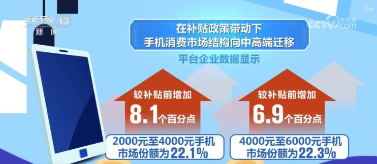 在补贴策略带动下,手机亏空市鸠合构向中高端挪动。平台企业数据袒露,2000元至4000元、4000元至6000元手机市集份额分离为22.1%、22.3%,较补贴前分离加多8.1个、6.9个百分点。