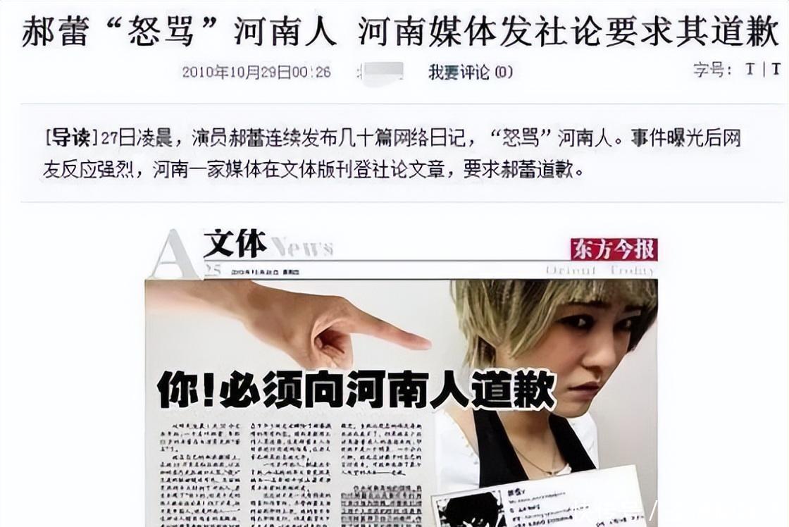 2010年,郝蕾瞬息连发十几篇动态,斥责河南东说念主,引得河南一家报纸平直下场条件郝蕾说念歉。