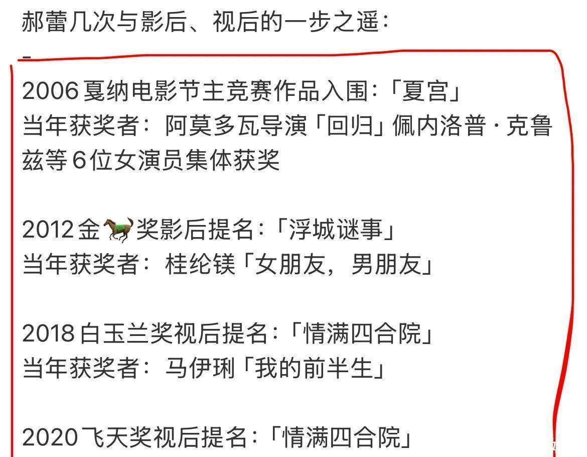 是郝蕾逸群绝伦,不念念拿奖吗?是她拿不到,似乎奖运老是差了那么少量。