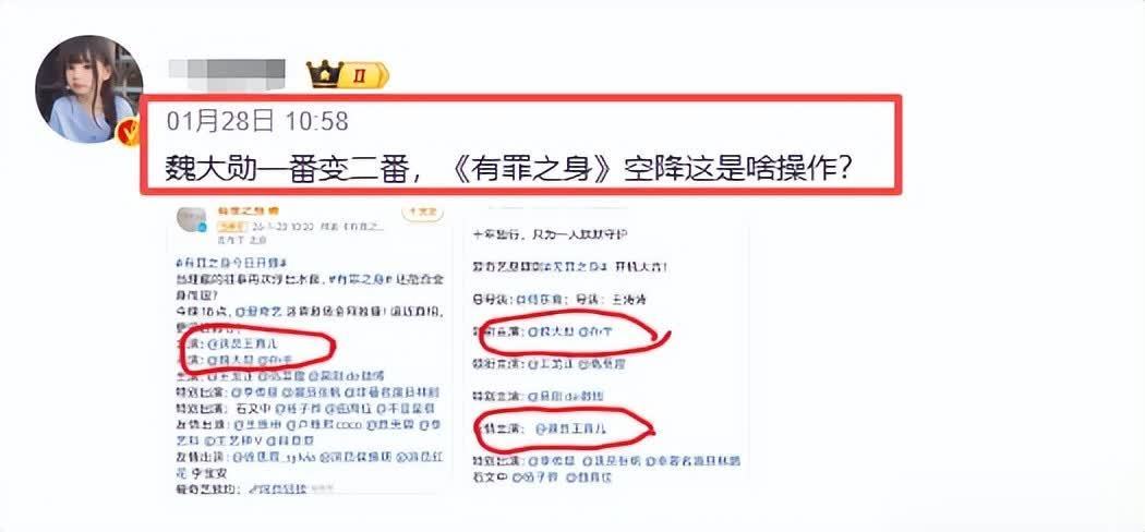 况且这部剧还有个挺奇幻的操作 —— 番位变动。开机时魏大勋、孙千是领衔主演,王真儿是友情主演排在第六位。