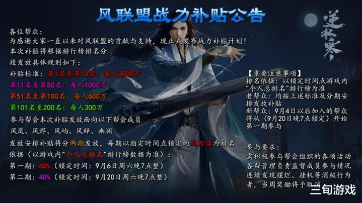 不管是古代如故当代,打起架来最紧迫的如故寰球基础,因此三大定约为了拉拢更多的玩家,不停辞天下频谈招兵买马,更是开出了一系列优厚的要求。比如风定约按照玩家战力排名披发补贴奖励,最高是2000万铜币(粗浅4000东谈主民币),依此类推。