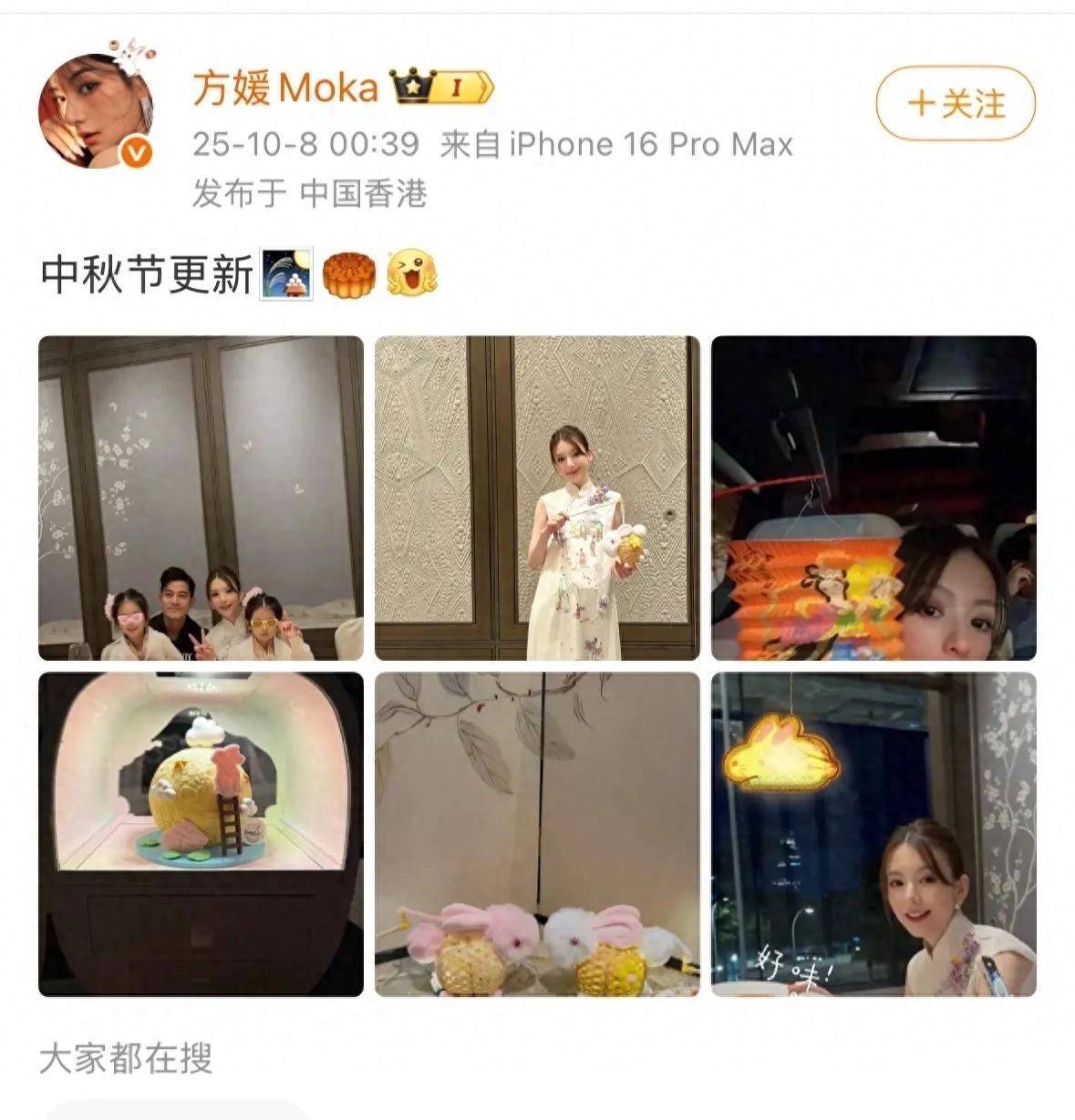 这次晒出的中秋合照,则明确证实了方媛仍未分娩,第三胎仍在腹中待娩。