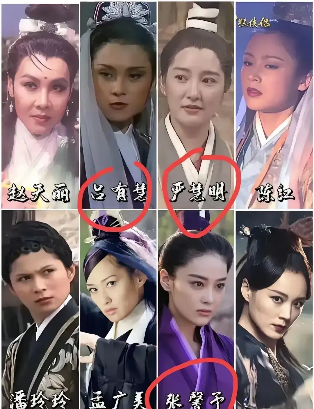 今天重心分析一下这6版,把张馨予,雪梨,陈红,严慧明等东说念主放一齐,差距就出来了。