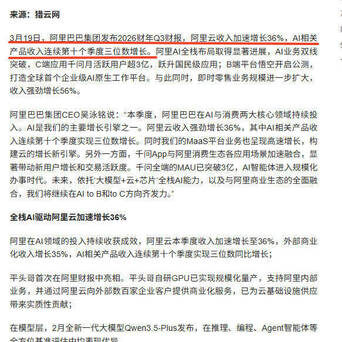 而阿里巴巴公布2026财年Q3财报,即是教练截至的时分。