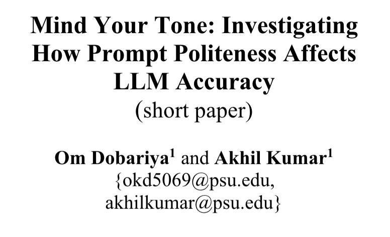 宾夕法尼亚州立大学的一项究诘《Mind Your Tone》露馅,你讲话越粗暴,LLM回复越准。